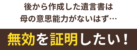 認知症と診断されているからといって意思能力遺言能力がないということでは必ずしもありません。認知症の程度や対応は様々であり、主治医に認知症と診断されていても、遺言書の内容によってはその作成ができるケースが多々あります。 諦めずにご相談ください。