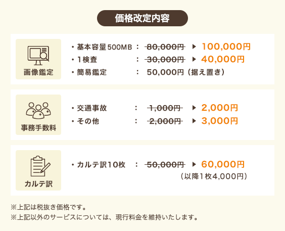 2026年2月以降に作成するお見積書より、以下の改定料金を適用させていただきます。